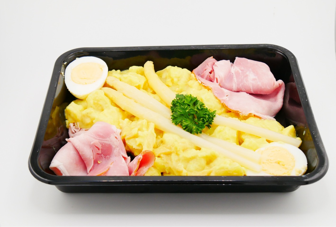 Bereiding: Het bakje met folie (gaatje in de folie prikken) 4 minuten op 750W verwarmen in de magnetron of 25 minuten op 95 graden in de oven verwarmen .