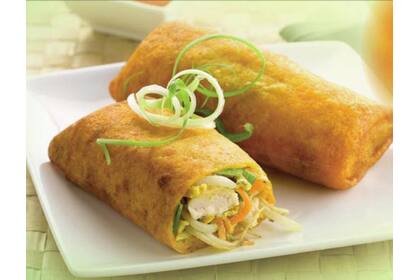 2 stuks zeer goed gevulde loempia met stukken Gildehoen kipfilet.