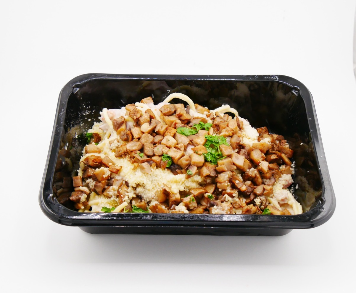 Bereiding: Het bakje met folie (gaatje in de folie prikken) 4 minuten op 750W verwarmen in de magnetron of 25 minuten op 95 graden in de oven verwarmen .