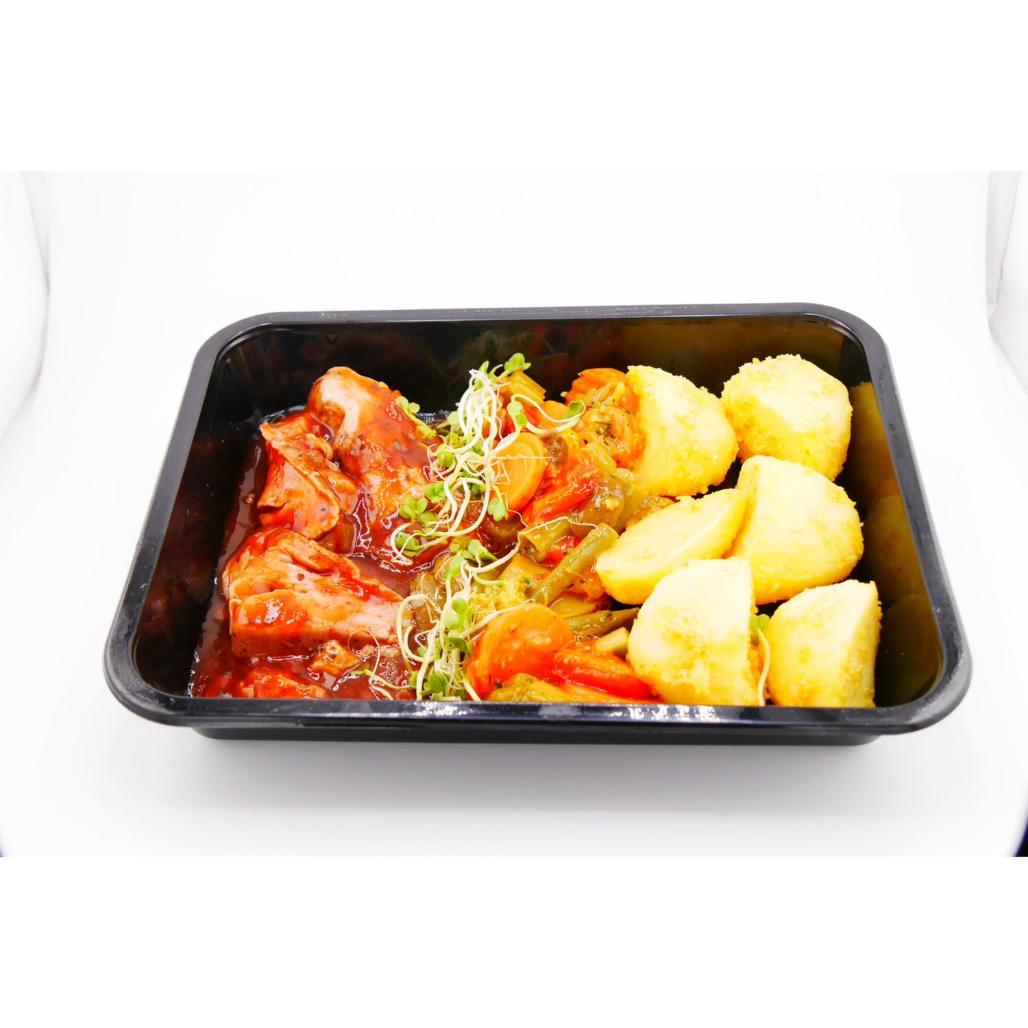 Bereiding: Het bakje 25 minuten op 95 graden in de oven verwarmen.